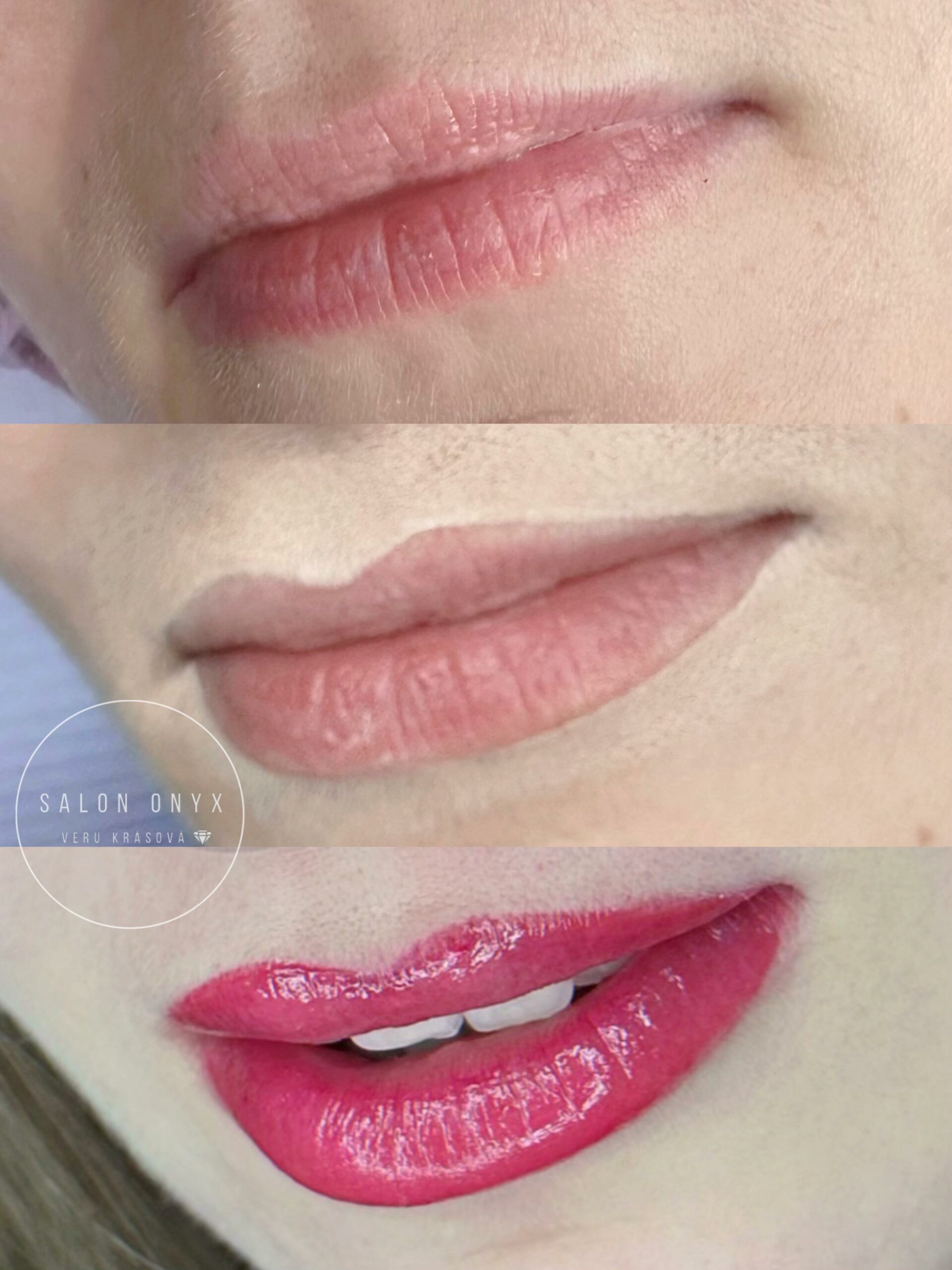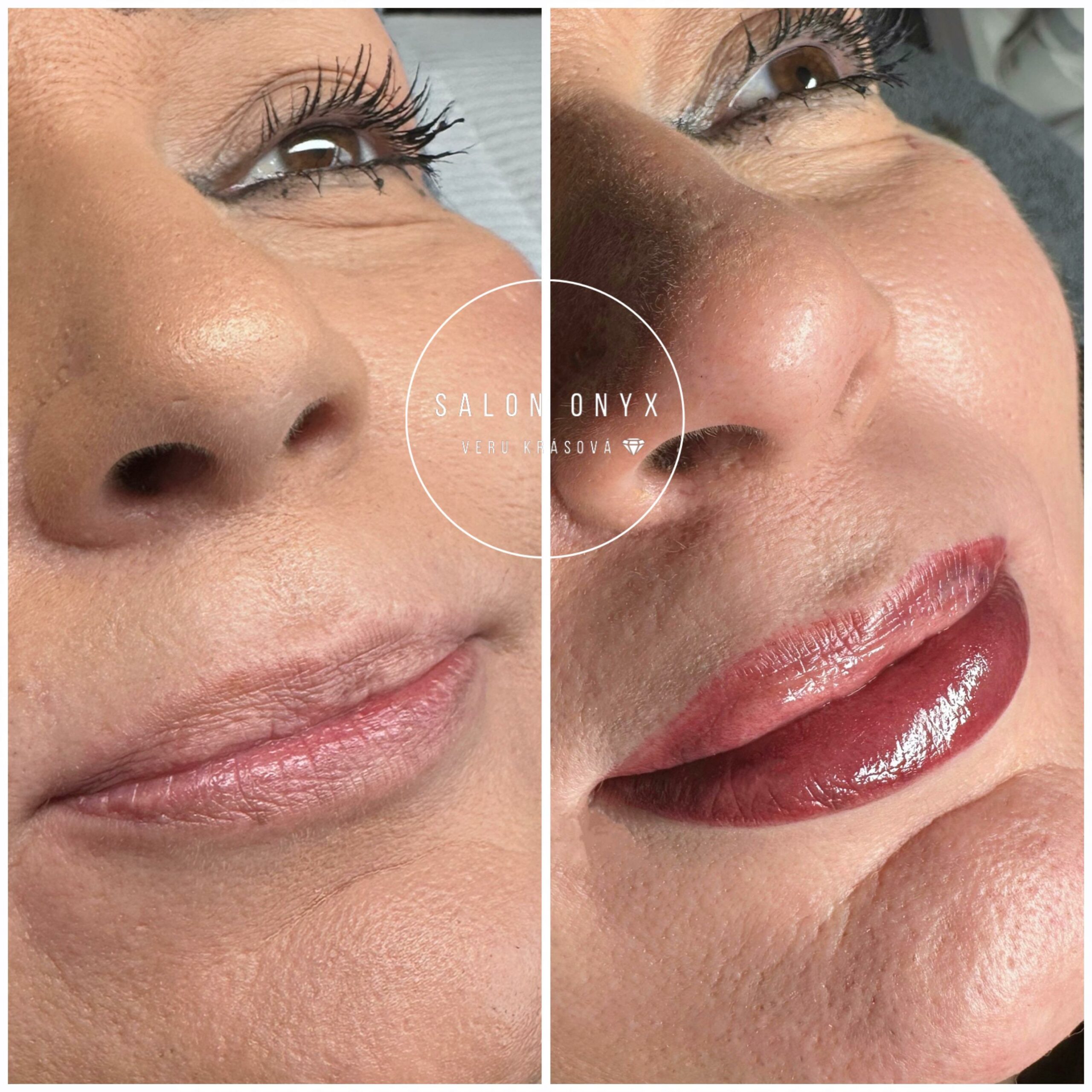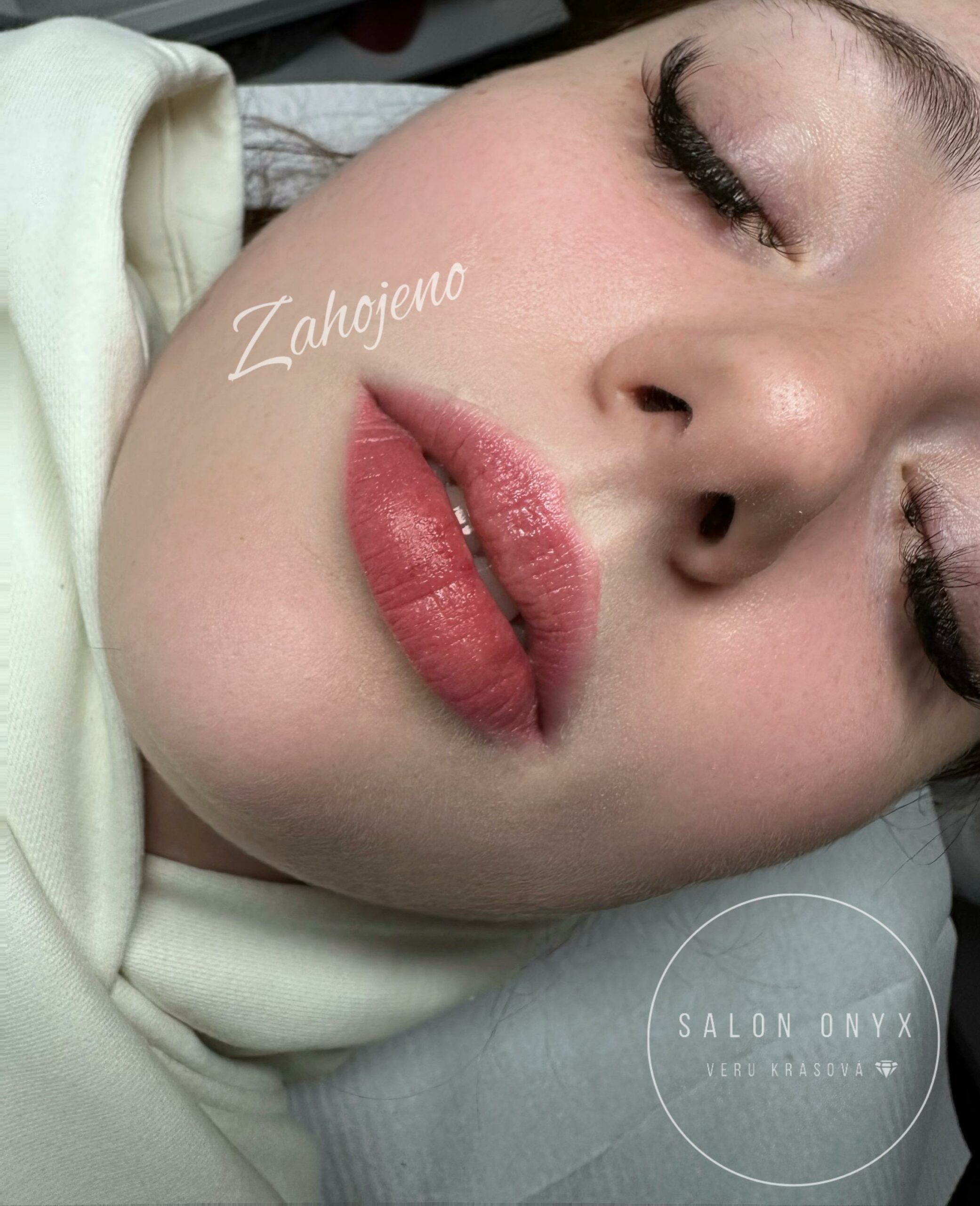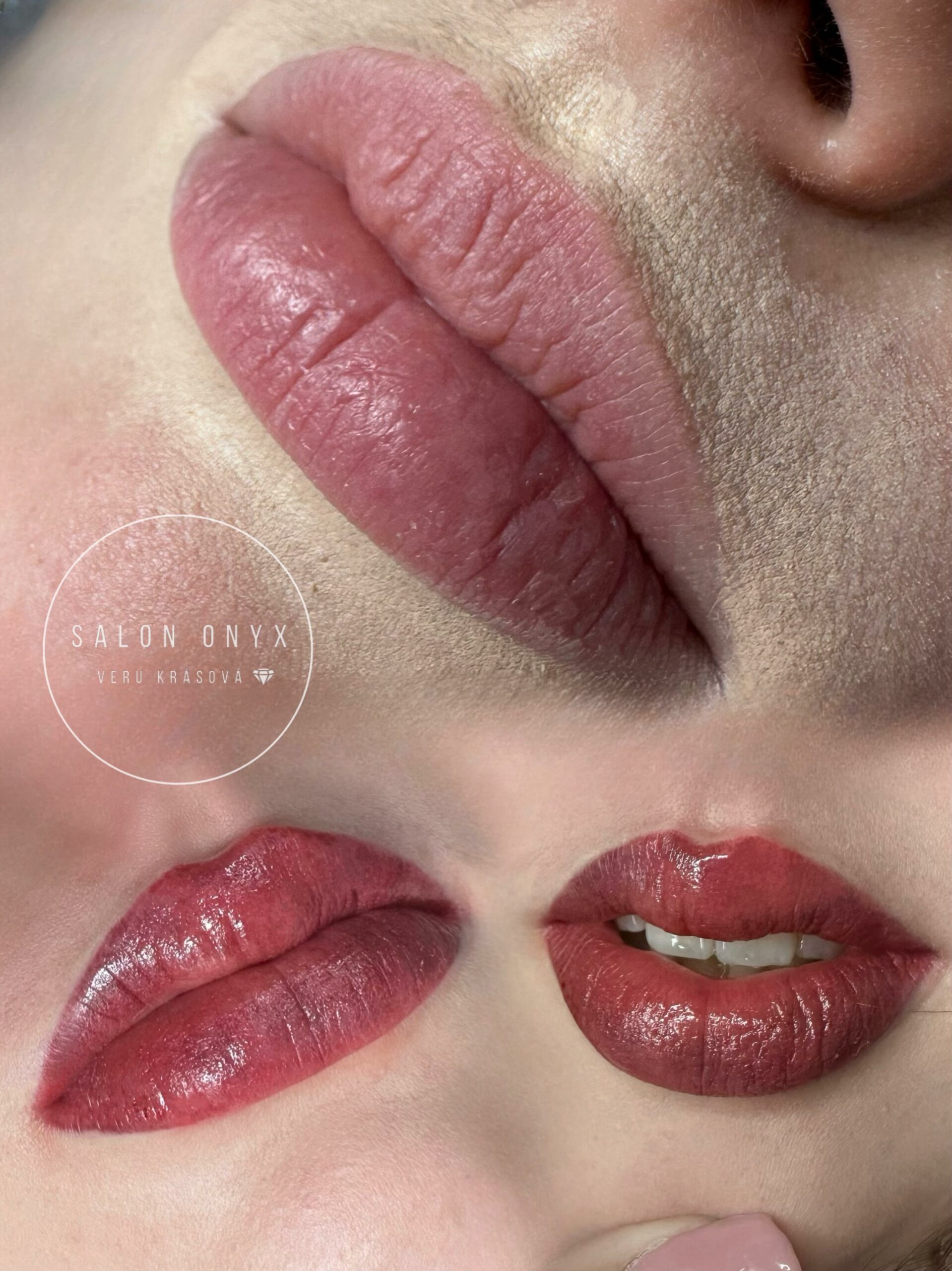 Bezprostředně po zákroku je barva tmavší. Během hojení (cca 7–10 dní) barva zesvětlí až o 30–40 % a zjemní. Finální výsledek uvidíš po zhojení a doplnění.