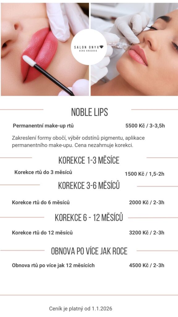 Noble Lips je prémiová technika permanentního make-upu rtů, která jim dodá jemnou barvu, vyvážený tvar a optický objem – to vše bez přehánění a s maximálním důrazem na přirozenost.