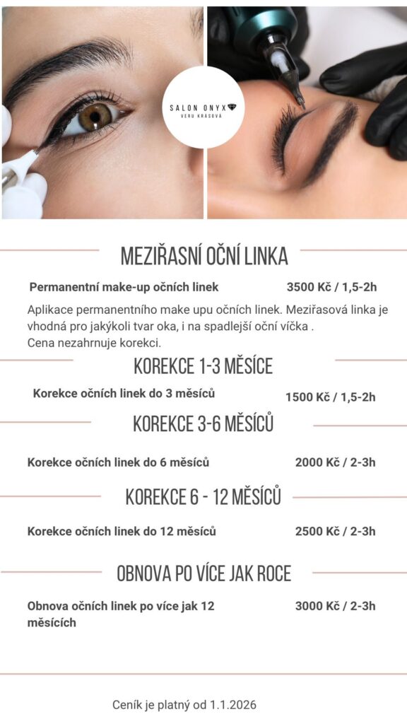 Meziřasní linka je diskrétní a velmi přirozená forma permanentního make-upu, která jemně zvýrazní oči tím, že pigmentujeme linku přímo mezi řasami.